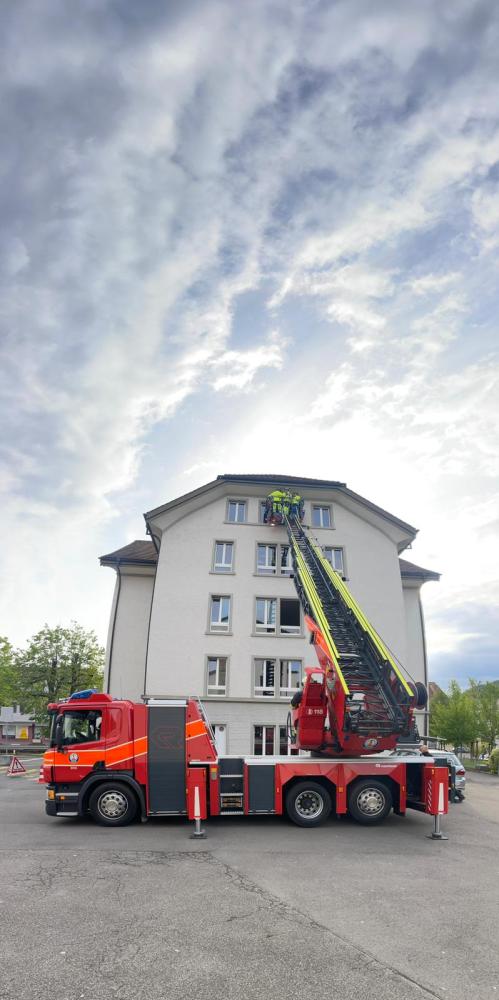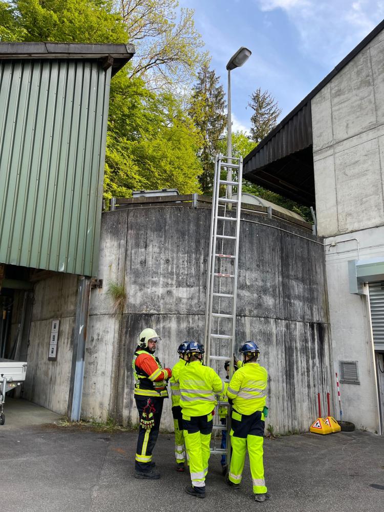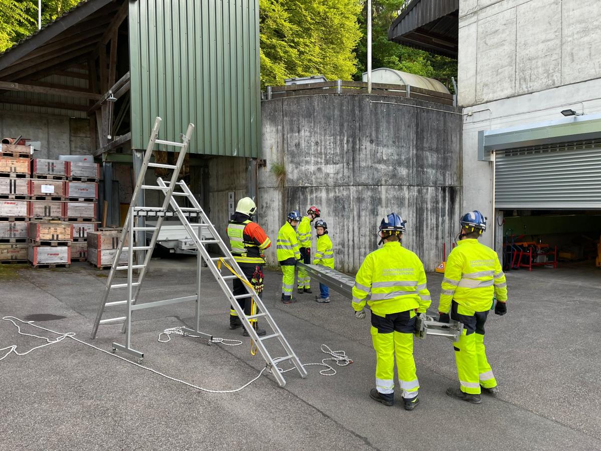 Hier lernen die Jugendlichen den richtigen Umgang mit der Leiter, von der Leiterstellung bis zum Rückzug.