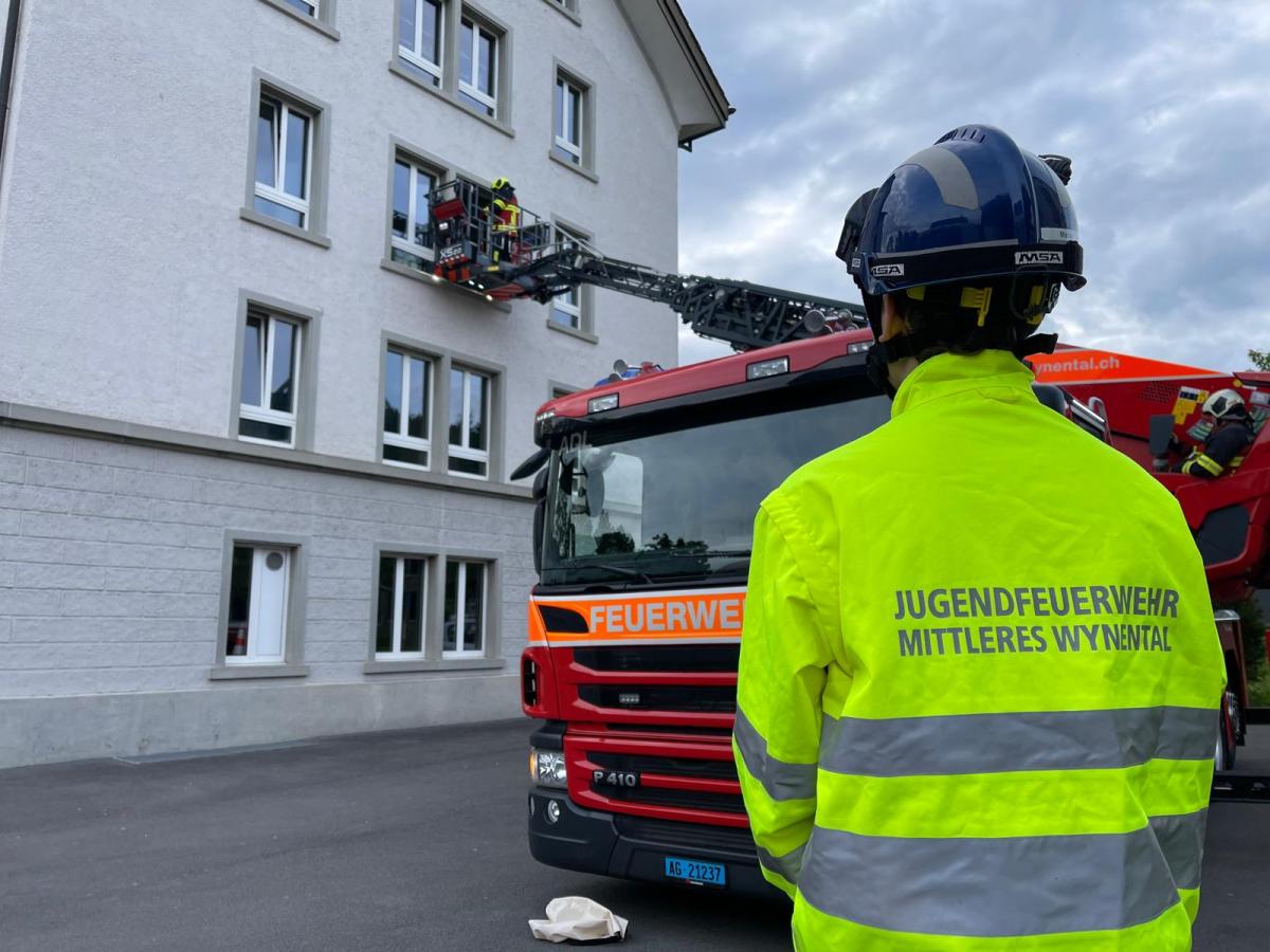 Hier lernen die Jugendlichen den richtigen Umgang mit der Leiter, von der Leiterstellung bis zum Rückzug.